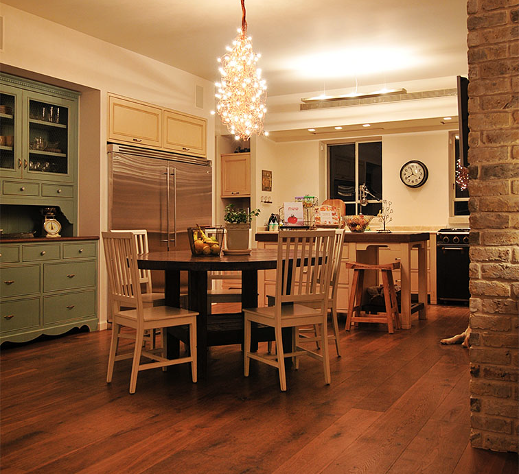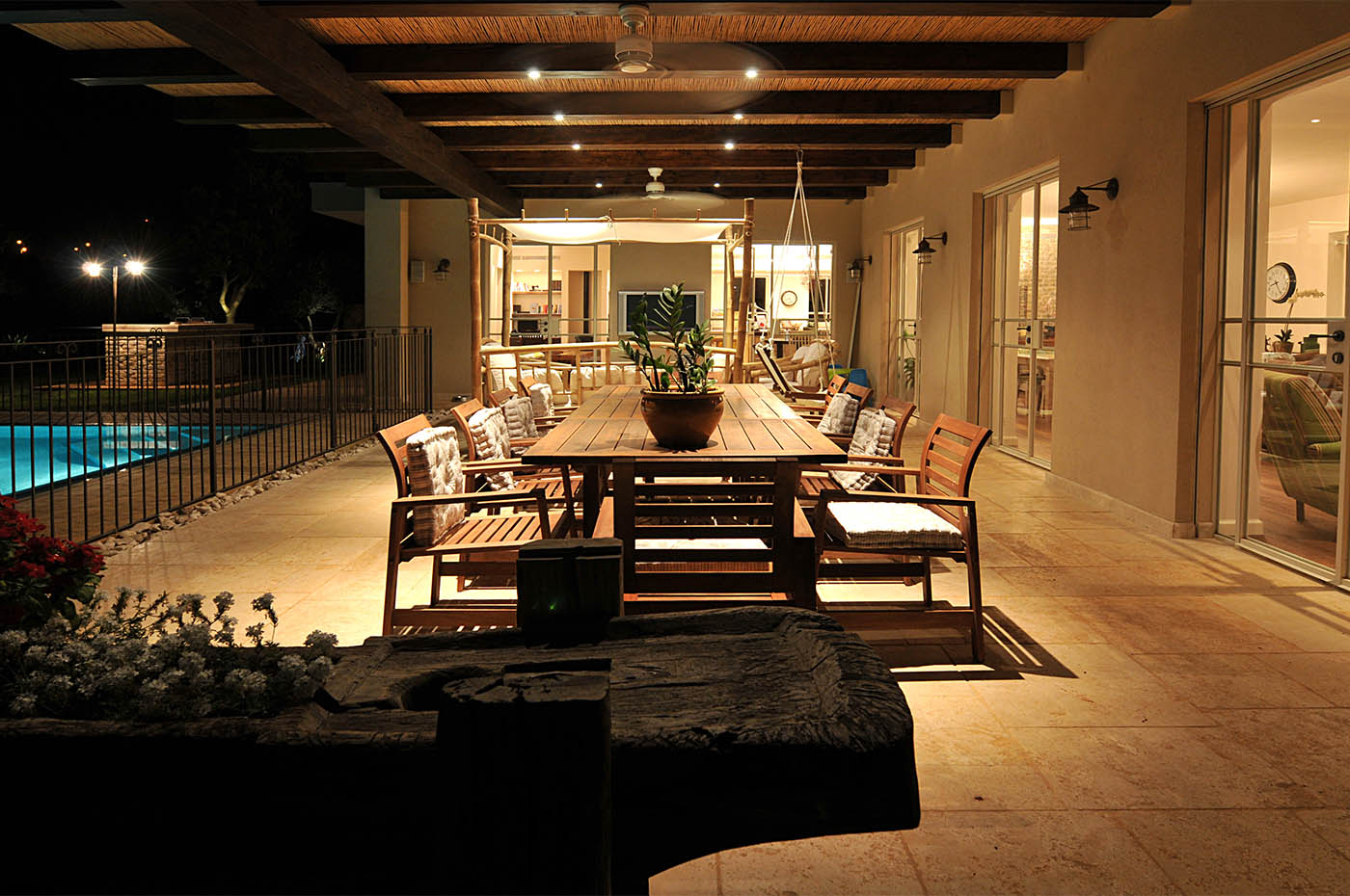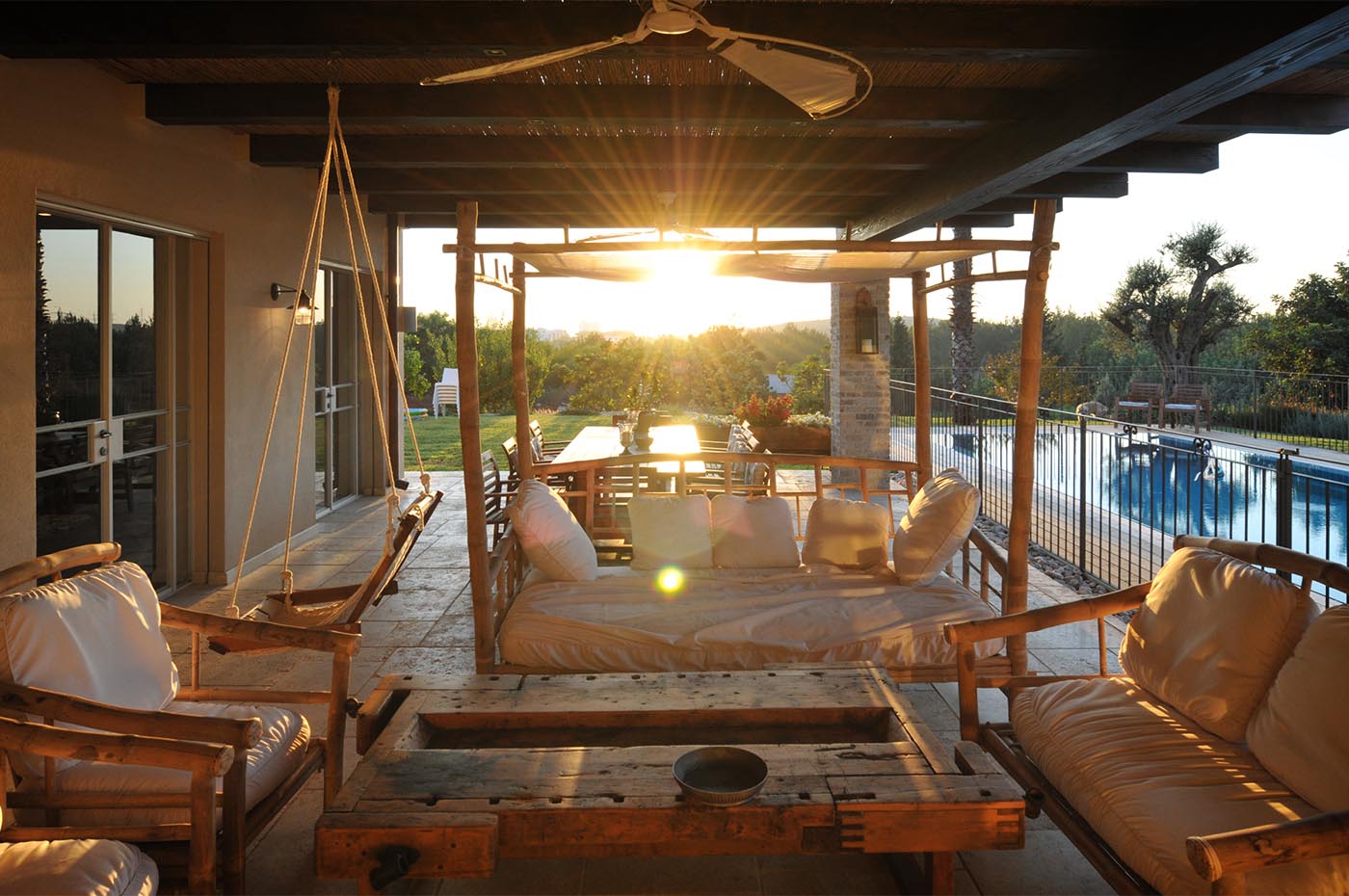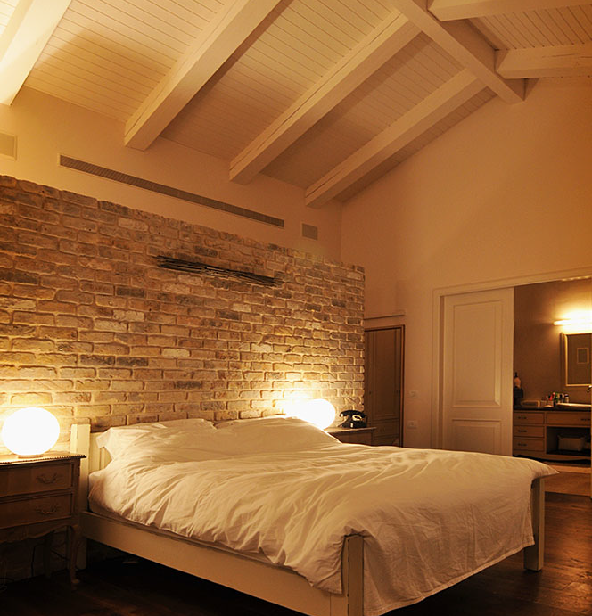בית בשכונה הוותיקה של מכבים. השכונה מאופיינת בבתים צמודי קרקע, בעלי אופי די אחיד מאופק עם גגות רעפים. רצון הלקוח היה בית כפרי עם סממנים מאפיינים של רצפת עץ, לבנים ורהוט מסוגנן. כל זאת כדי ליצור תחושה של בית חם ולא פתוח מידי לסביבה. הבית עוטף רחבה חיצונית מקורה בפרגולה וצופה לבריכת שחיה המשמשת לפעילות חברתית ענפה (בית